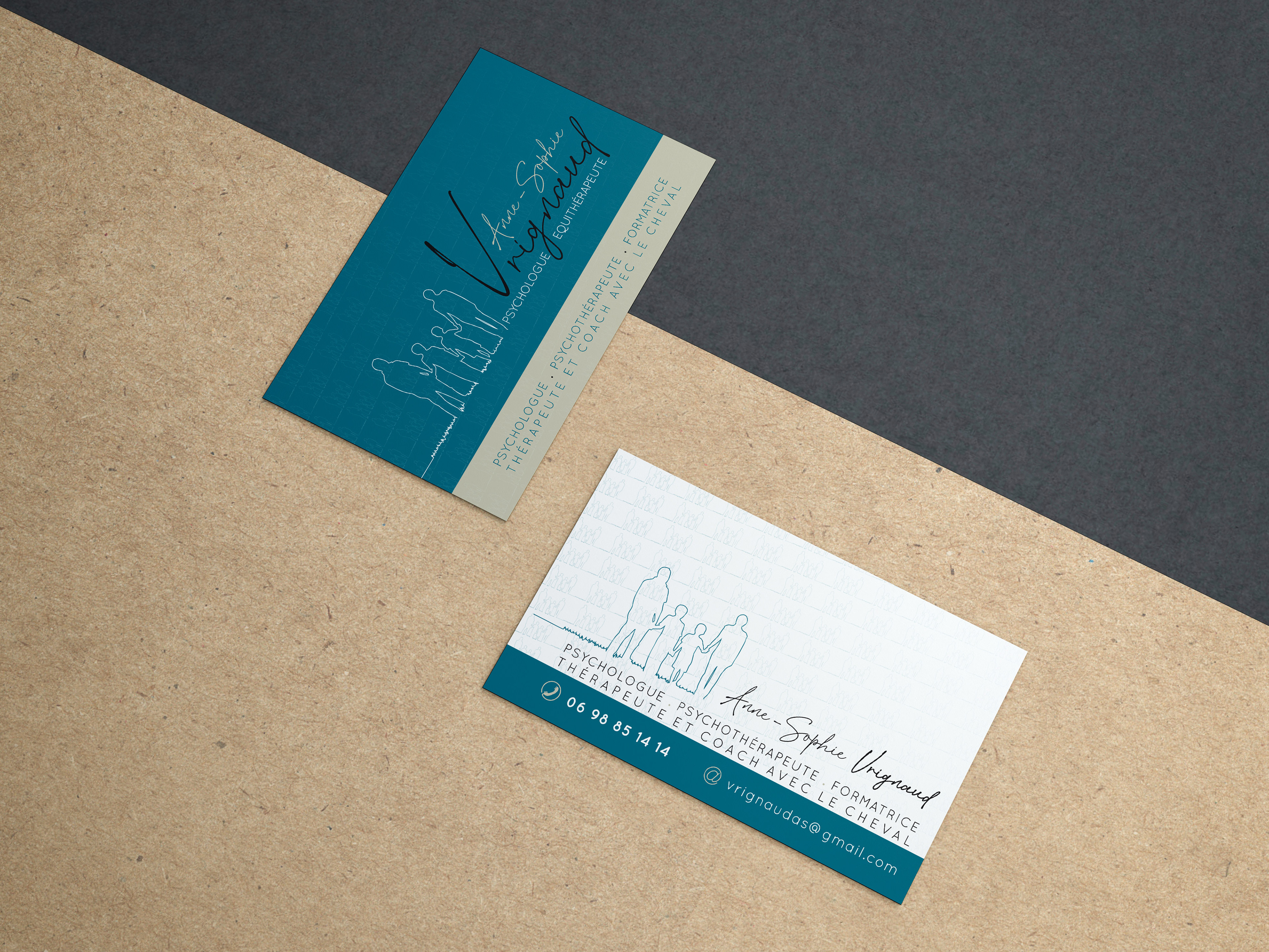 Cartes de visite Anne Sophie Vrignaud . Recto Verso pelliculage mat.