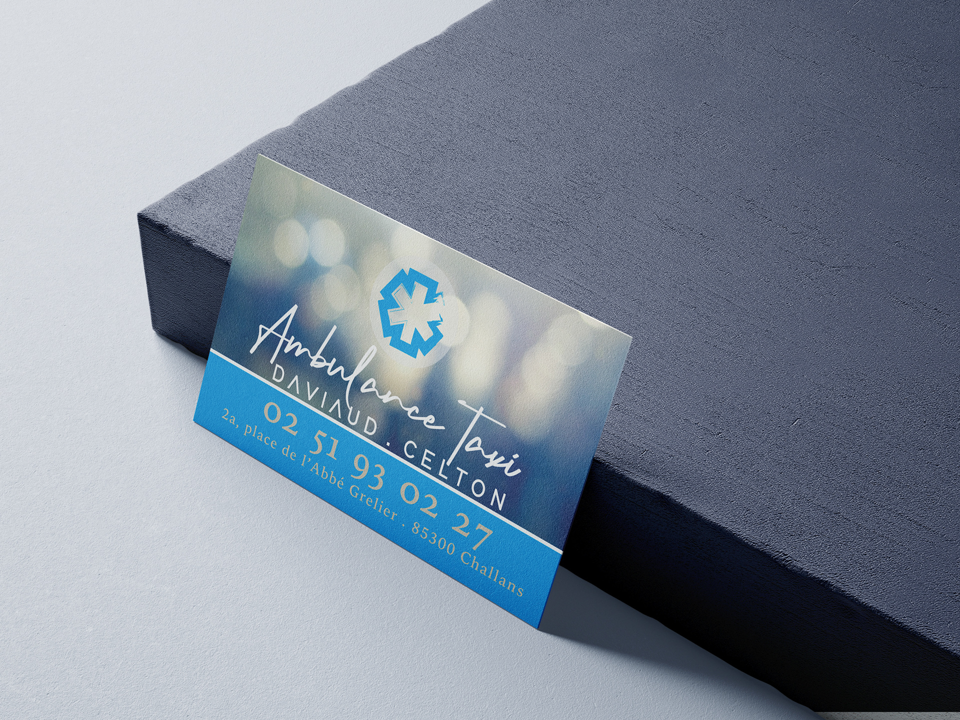 Carte de visite Ambulance Daviaud Celton. Pelliculage brillant recto.